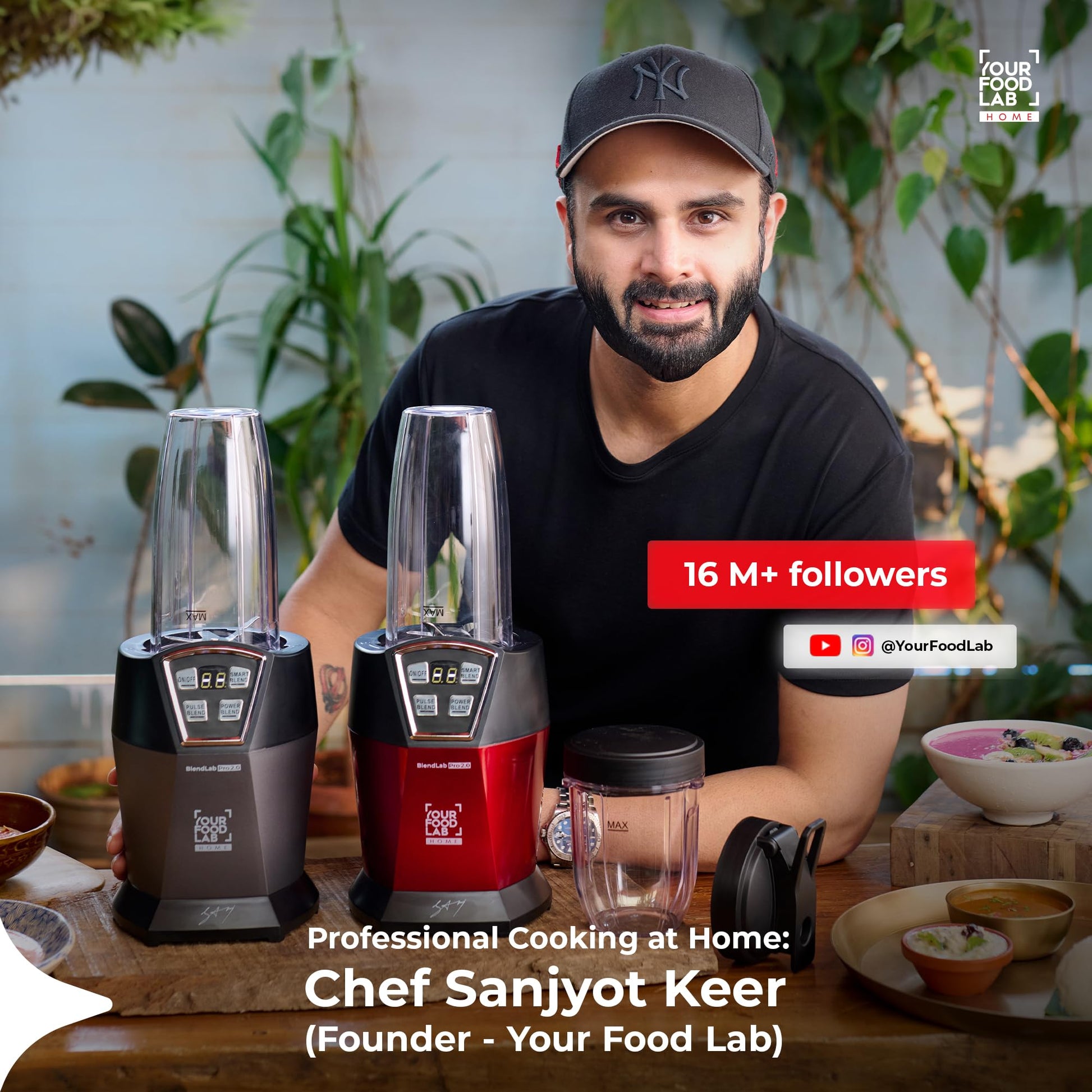 YFL HOME BlendLab Pro 2.0 Mixer Grinder for Kitchen, 1200W Blender with 2 Unbreakable Jars, 100% Copper Motor, Smoothie Maker with Preset Blend Modes, Laser Cut SS Blades | Blender for Smoothies (Red)