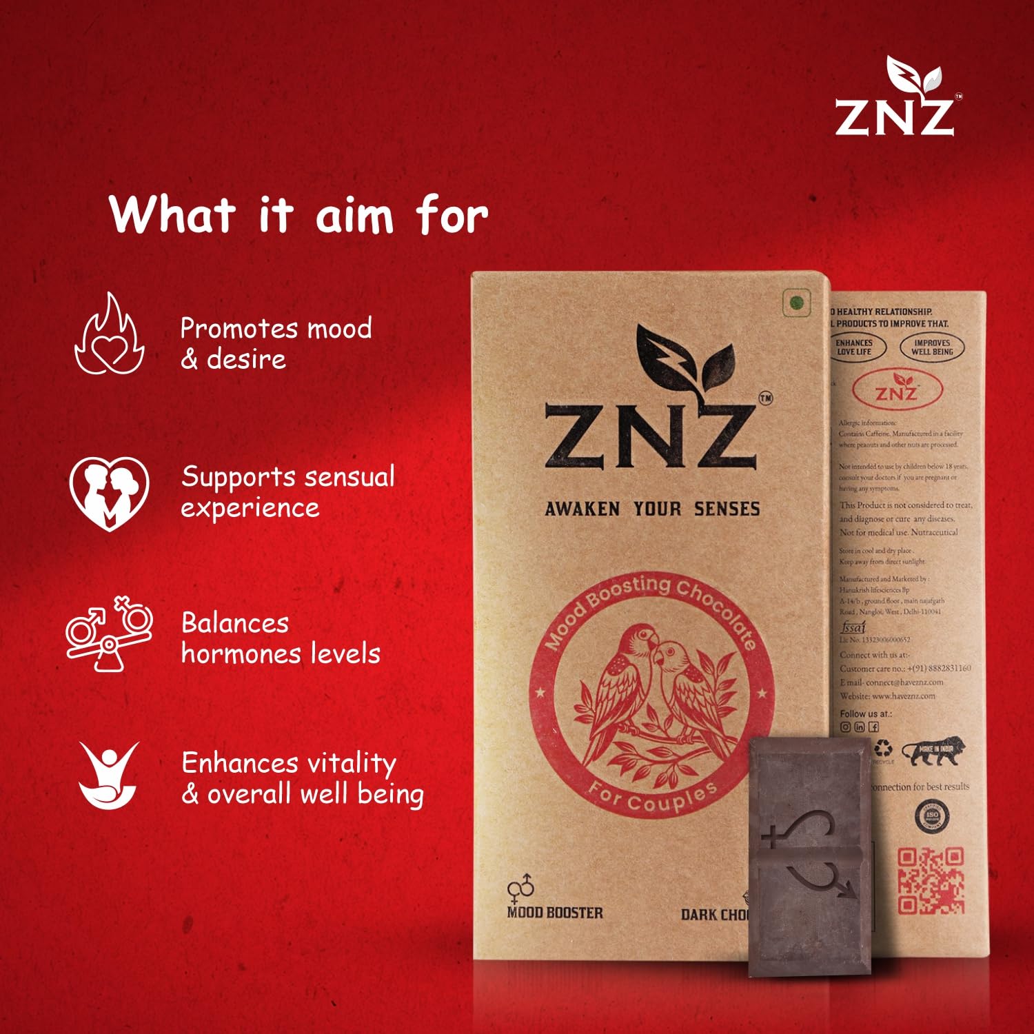 - 💑 Supports Overall Well Being: ZNZ Chocolate is made up of Natural Aphrodisiac Herbs which supports in uplifting Mood ,Desire, Energy, Intimacy , Vitality and Overall Well Being. Every bite spreads joy and happiness in the relationship.